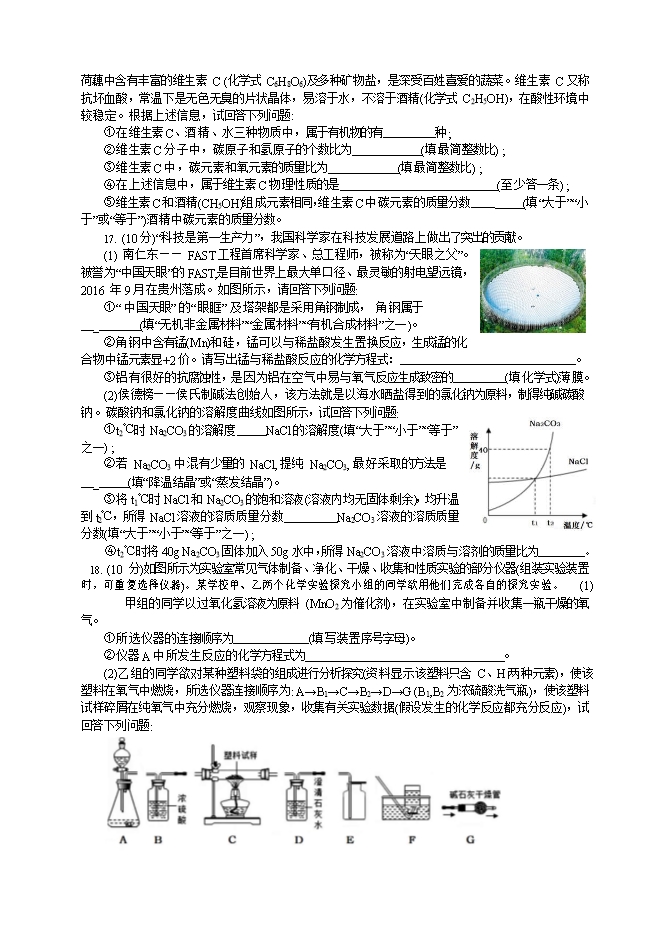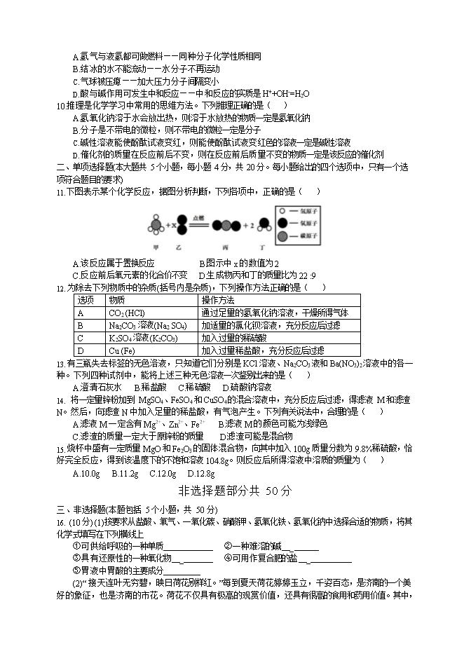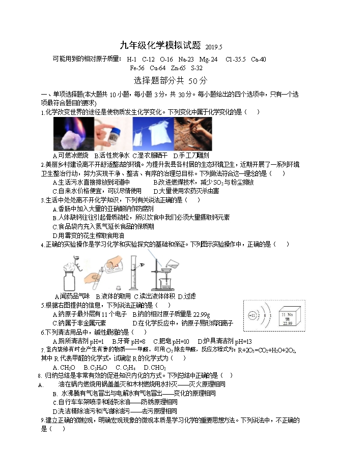 【内容简介】2019年山东省济南市商河县二模化学试题(word版含答案)