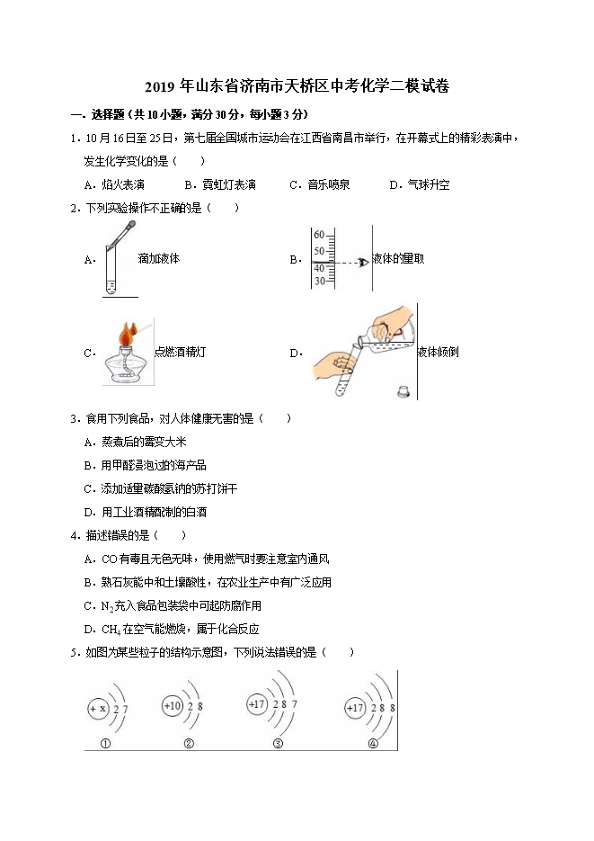 【内容简介】2019年山东省济南市天桥区中考化学二模试卷(word解析版)