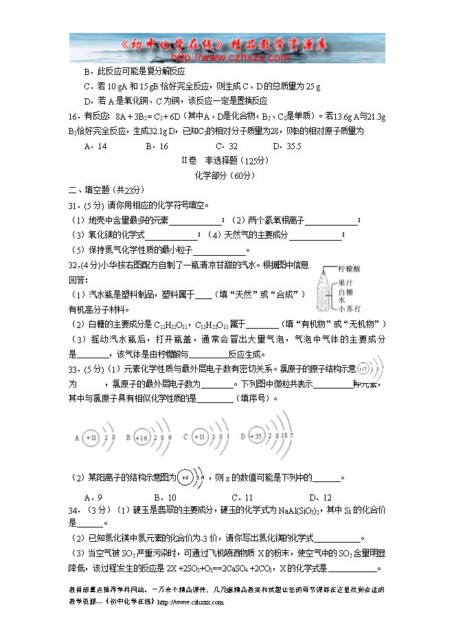 - 下一份试卷:2011年天津市初中毕业生学业考试化学试题及答案