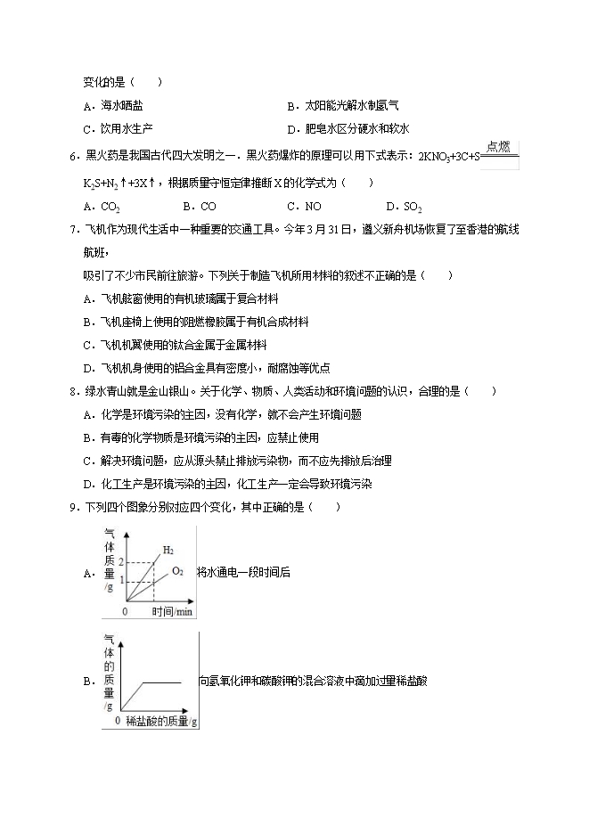 2019年山东省威海市石岛实验中学中考化学二模试卷(word解析版)