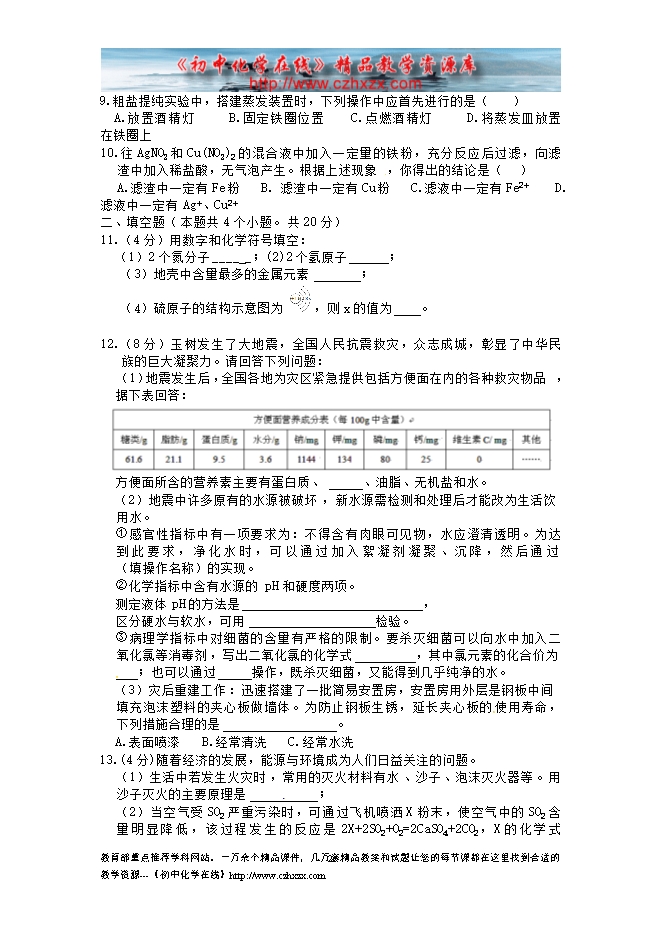 - 下一份试卷:2011年辽宁大连市初中毕业生学业考试化学试题及答案