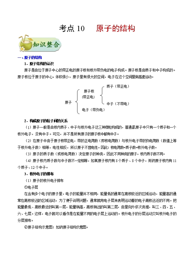 【内容简介】备战2019年中考化学考点一遍过考点10 原子的结构(word版含答案解析)