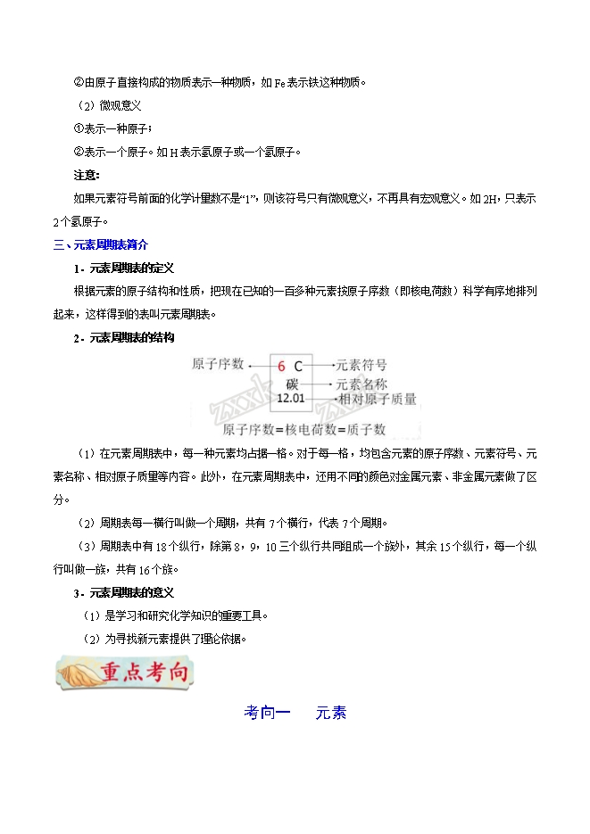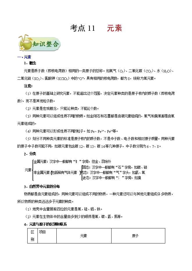 【内容简介】备战2019年中考化学考点一遍过考点11 元素(word版含答案解析)