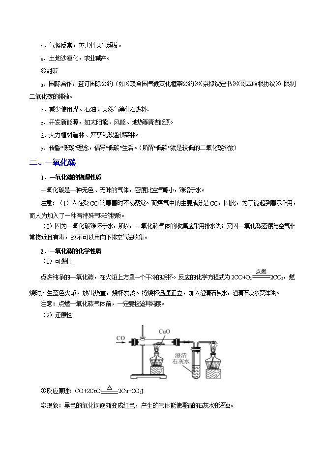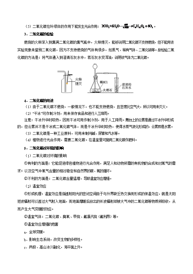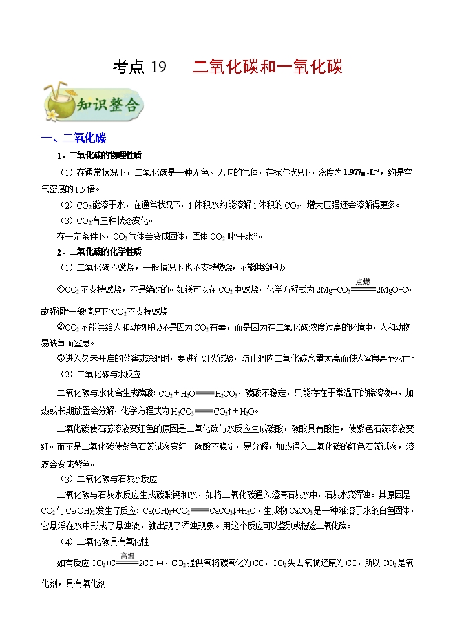【内容简介】备战2019年中考化学考点一遍过考点19 二氧化碳和一氧化碳(word版含答案解析)