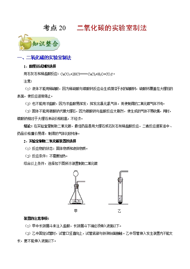 【内容简介】备战2019年中考化学考点一遍过考点20 二氧化碳的实验室制法(word版含答案解析)