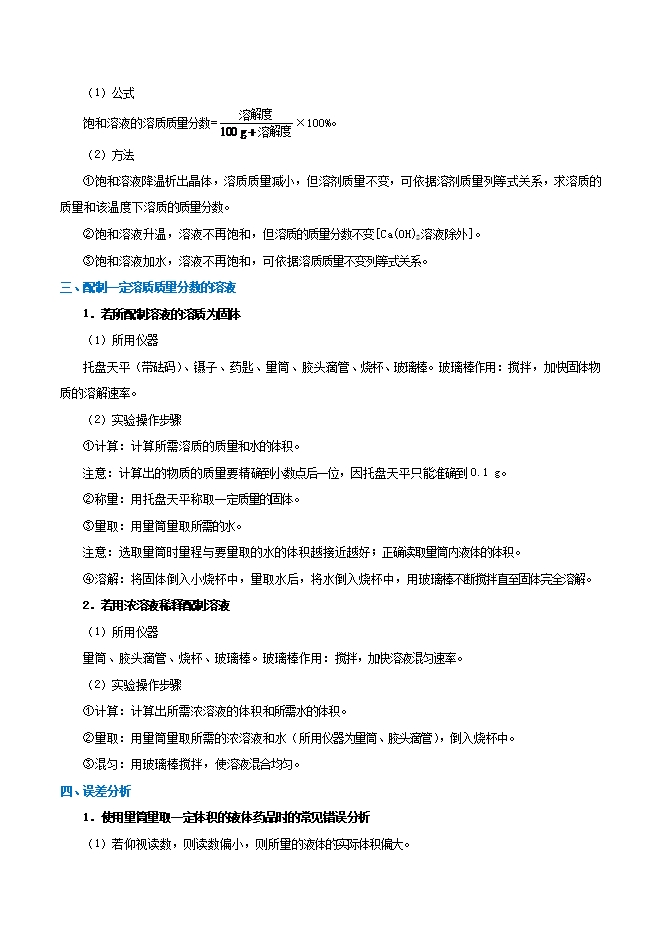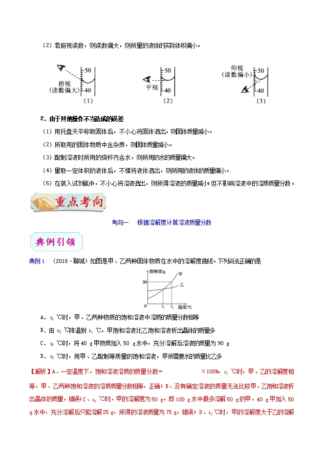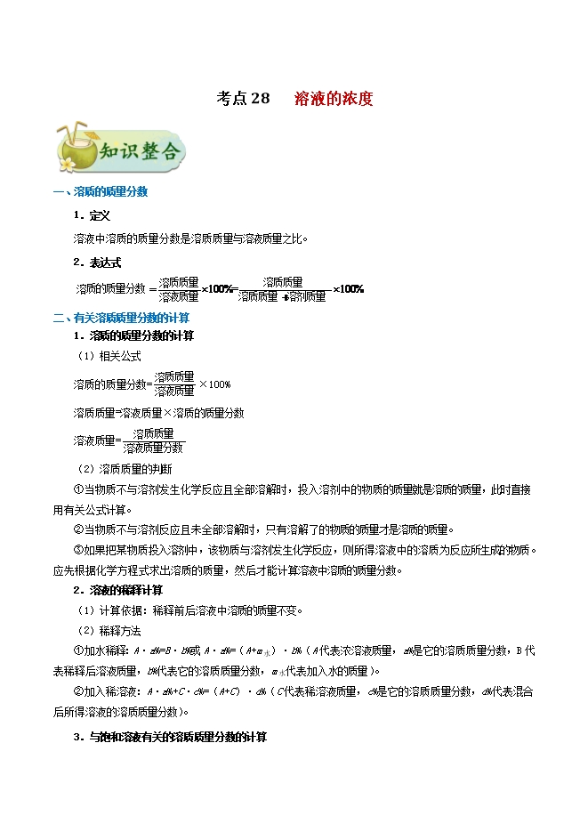 【内容简介】备战2019年中考化学考点一遍过考点28 溶液的浓度(word版含答案解析)