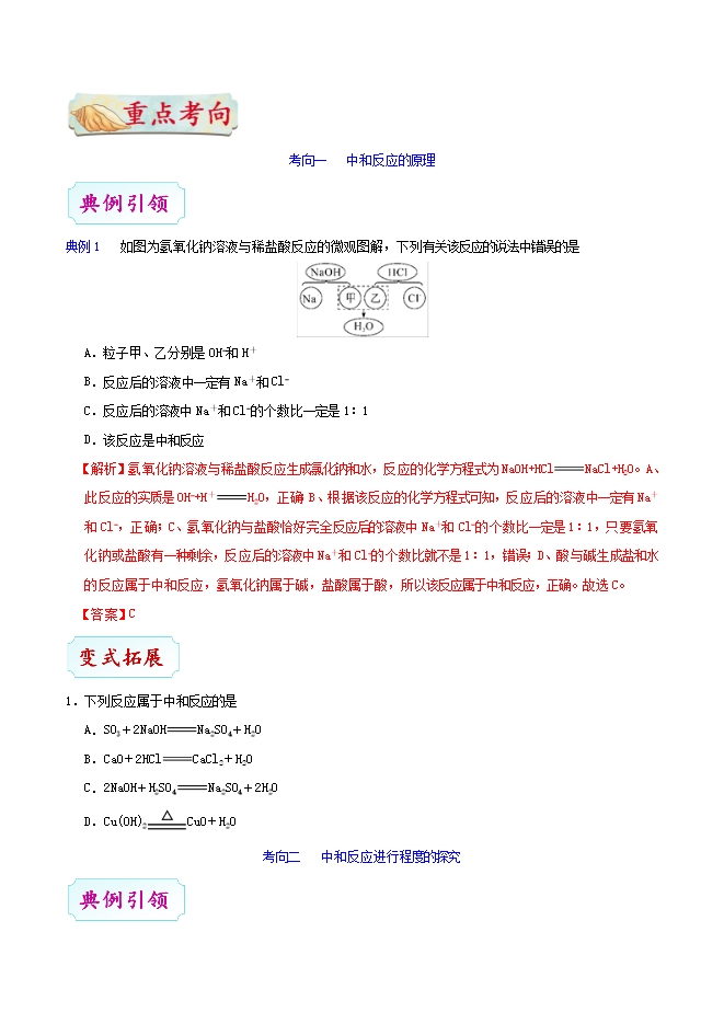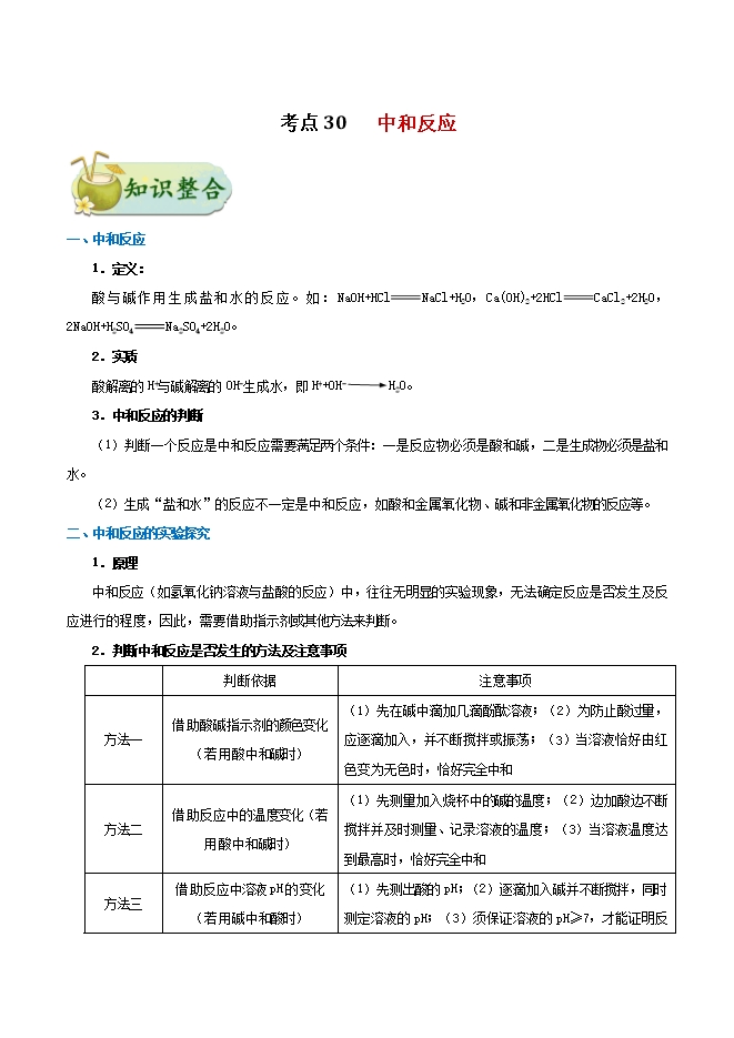 【内容简介】备战2019年中考化学考点一遍过考点30 中和反应(word版含答案解析)