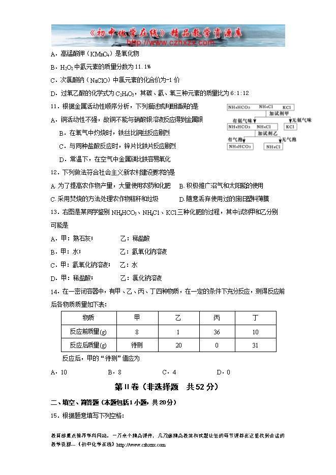 - 下一份试卷:2011年包头市高中招生考试理科综合化学试题及答案