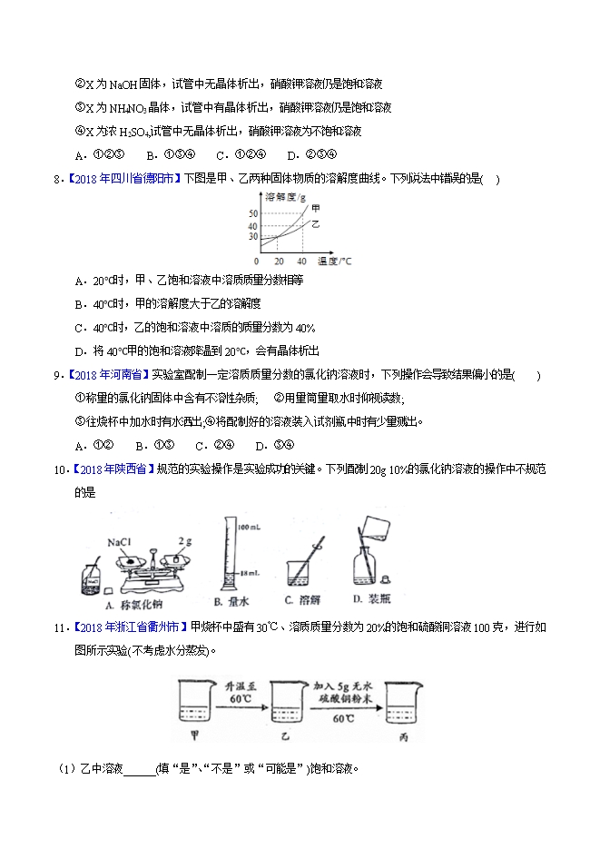 【内容简介】2019年备战中考化学精品系列2年中考1年模拟专题02 水与常见溶液(原卷版)