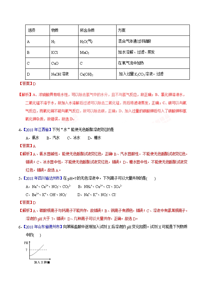 2019年备战中考化学精品系列2年中考1年模拟专题04 生活中常见的化合物(解析版)