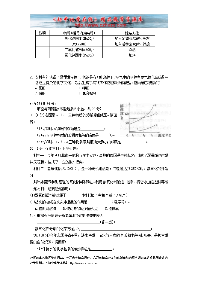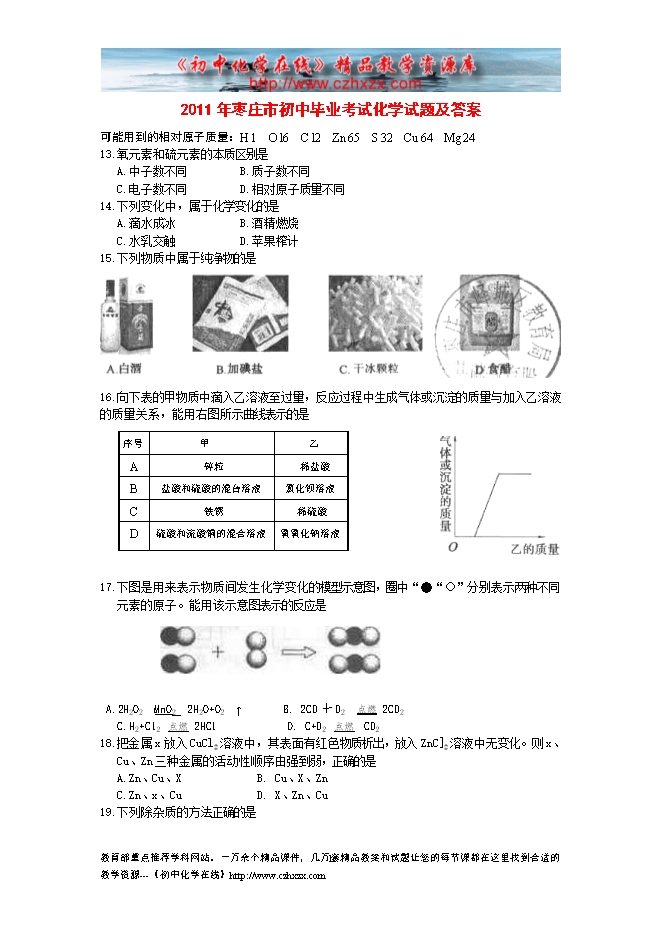 2011年枣庄市初中毕业考试化学试题及答案