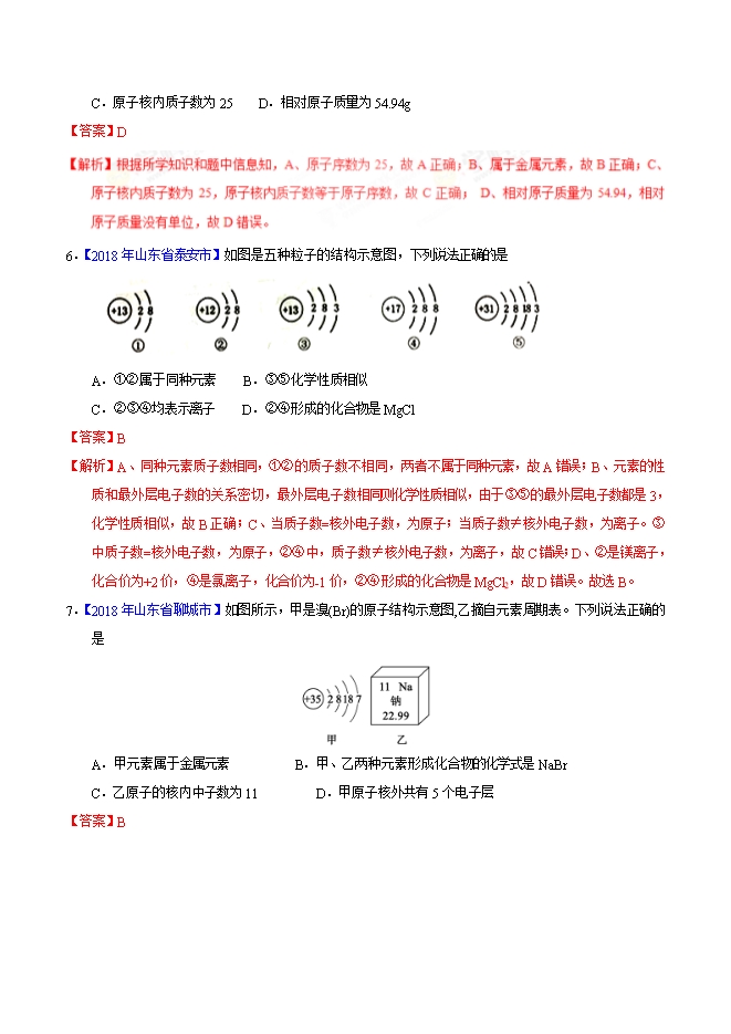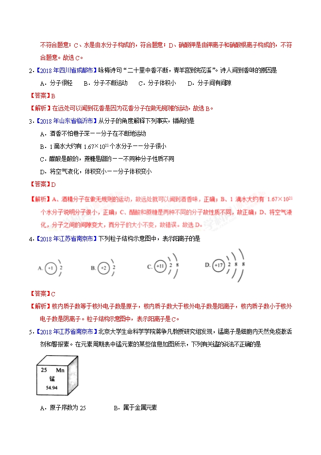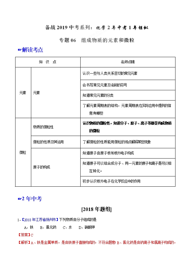 【内容简介】2019年备战中考化学精品系列2年中考1年模拟专题06 组成物质的元素和微粒(解析版)