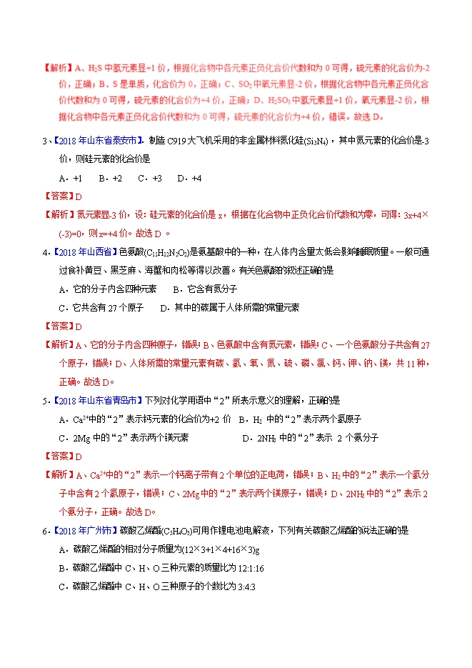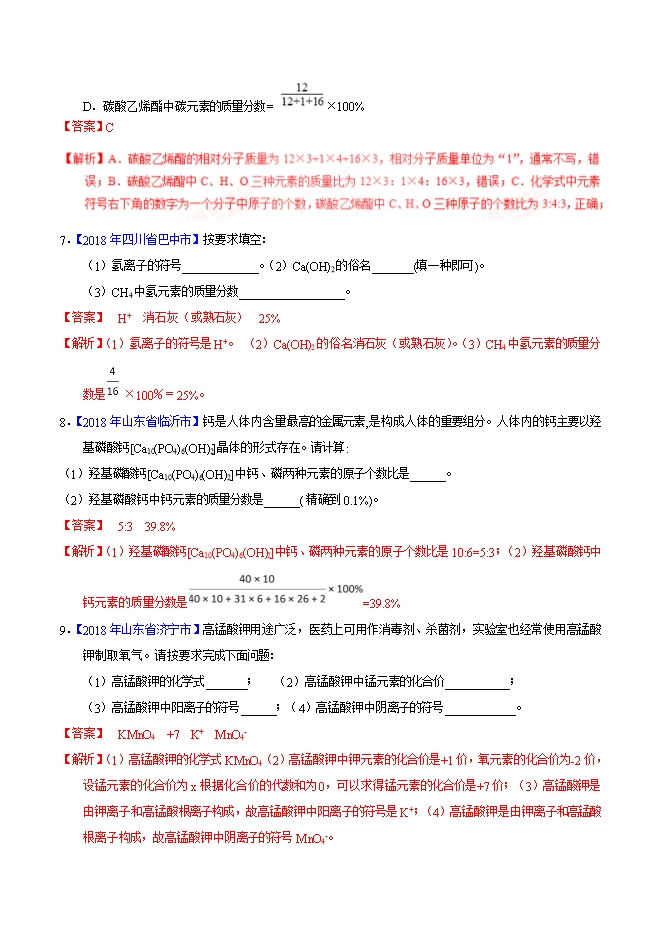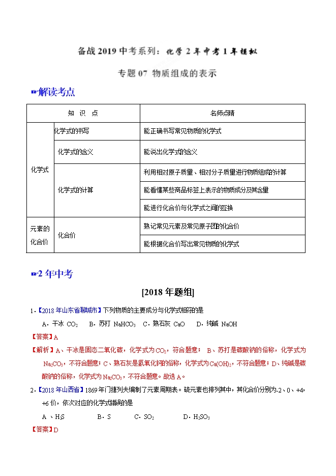 【内容简介】2019年备战中考化学精品系列2年中考1年模拟专题07 物质组成的表示(解析版)