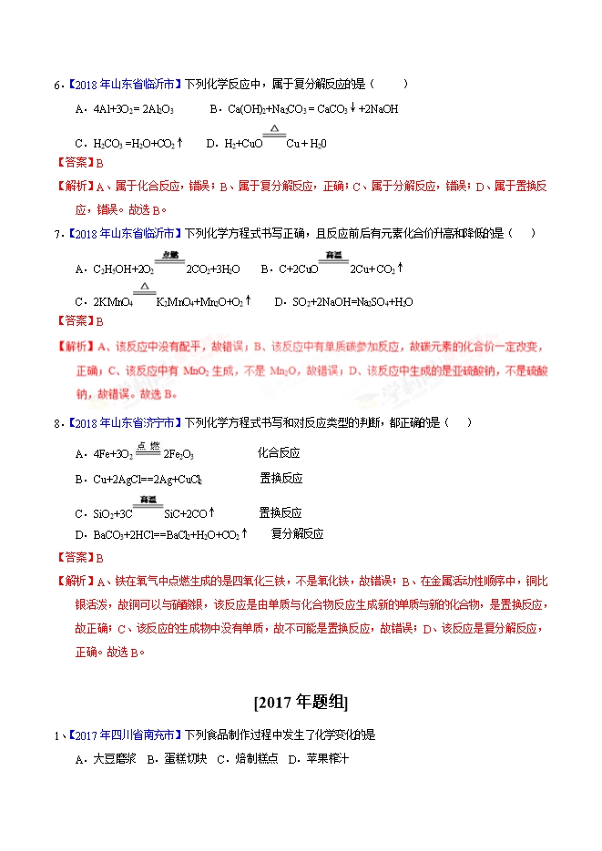 2019年备战中考化学精品系列2年中考1年模拟专题08 化学反应的特征及类型(解析版)