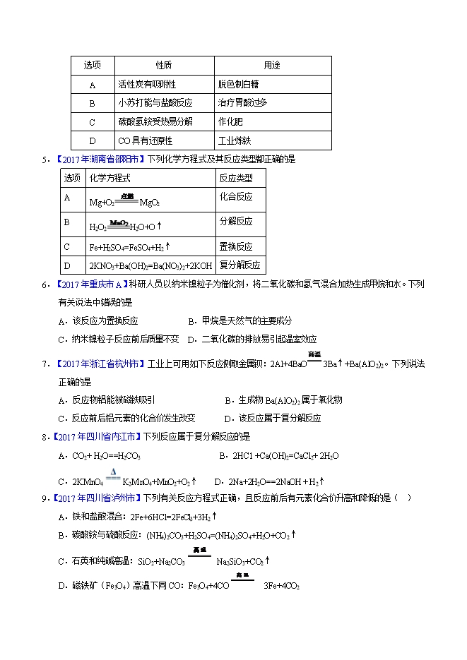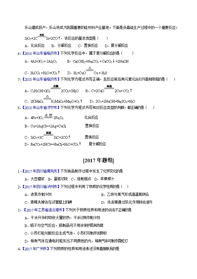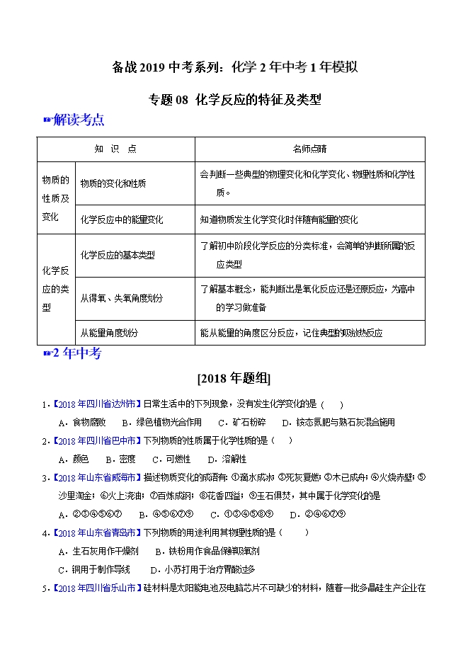 2019年备战中考化学精品系列2年中考1年模拟专题08 化学反应的特征及类型(原卷版)