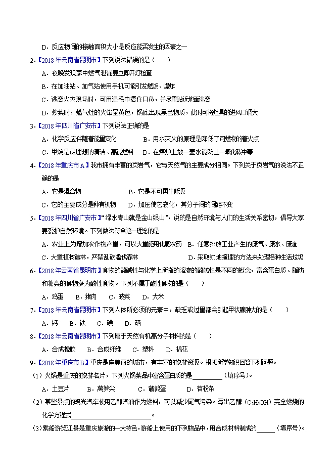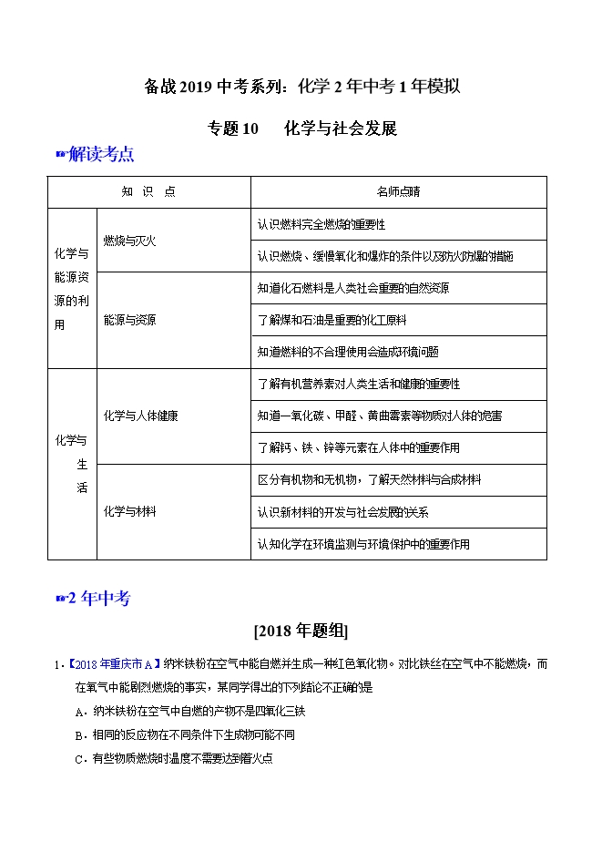 【内容简介】2019年备战中考化学精品系列2年中考1年模拟专题10 化学与社会发展(原卷版)