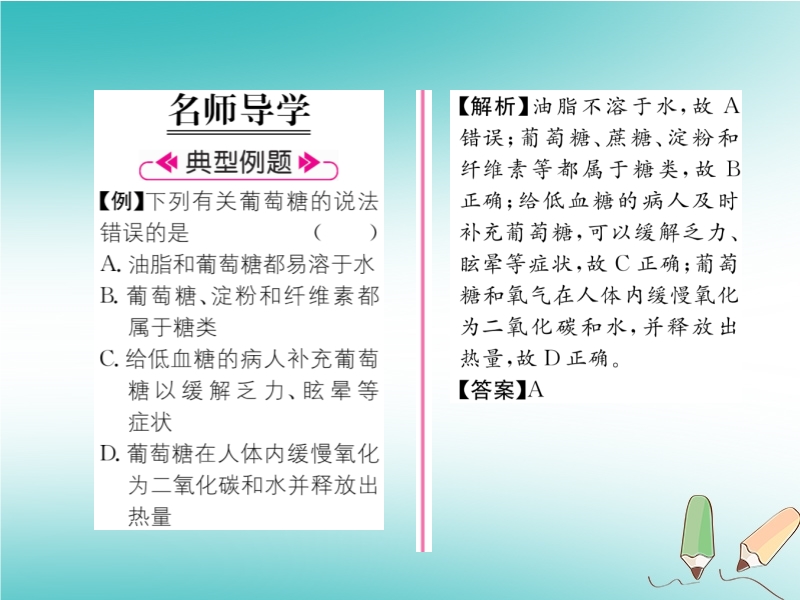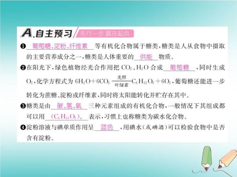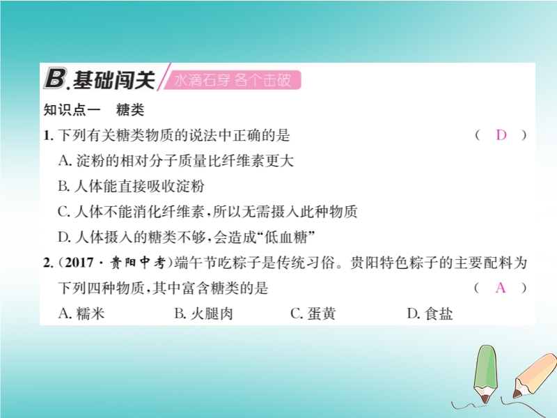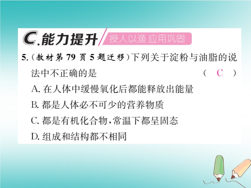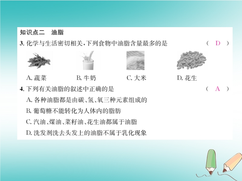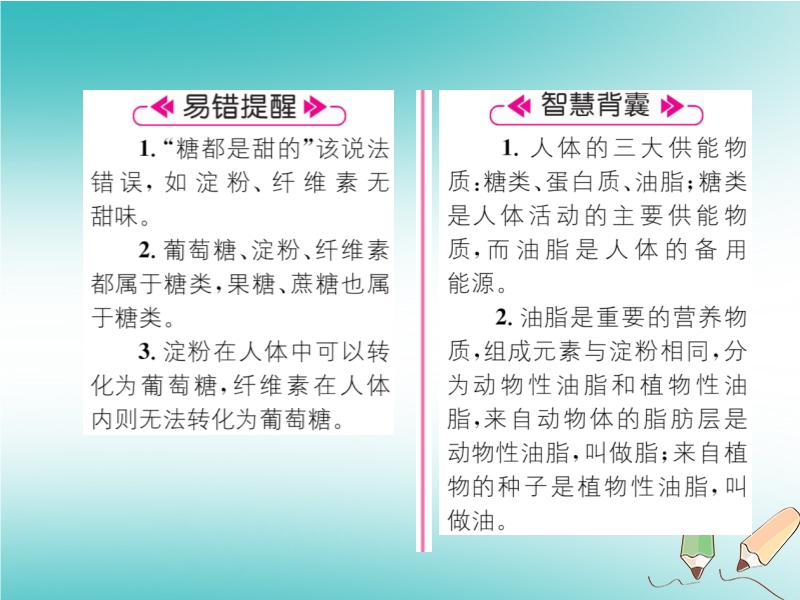 2019春沪教版九年级化学下册《第8章第2节 糖类油脂》习题课件