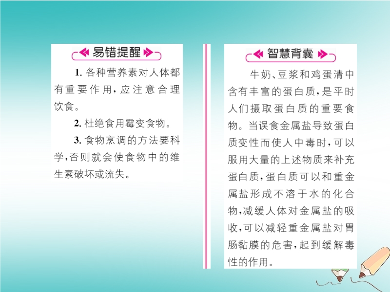 【内容简介】2019春沪教版九年级化学下册《第8章第3节 蛋白质维生素》习题课件