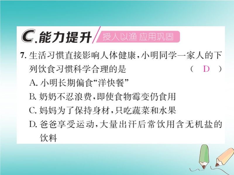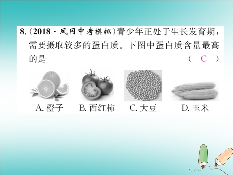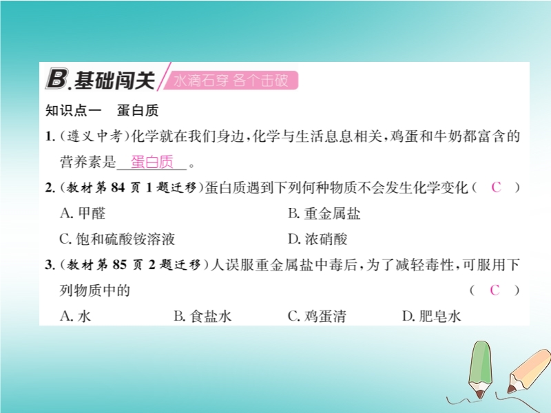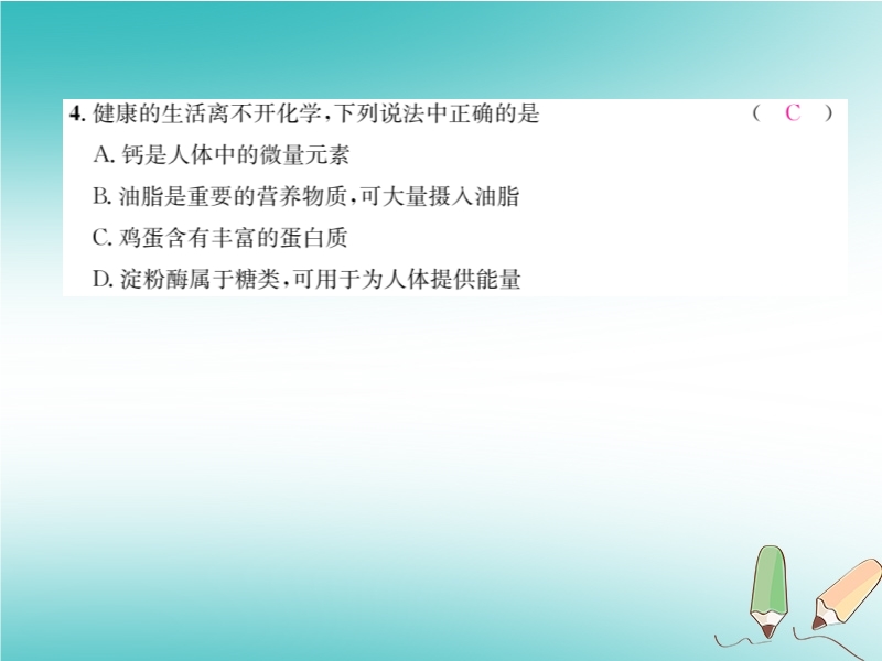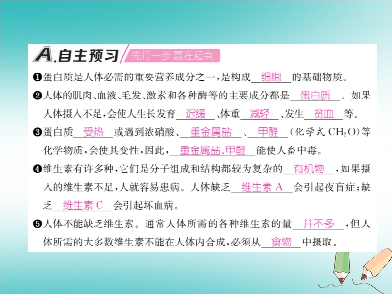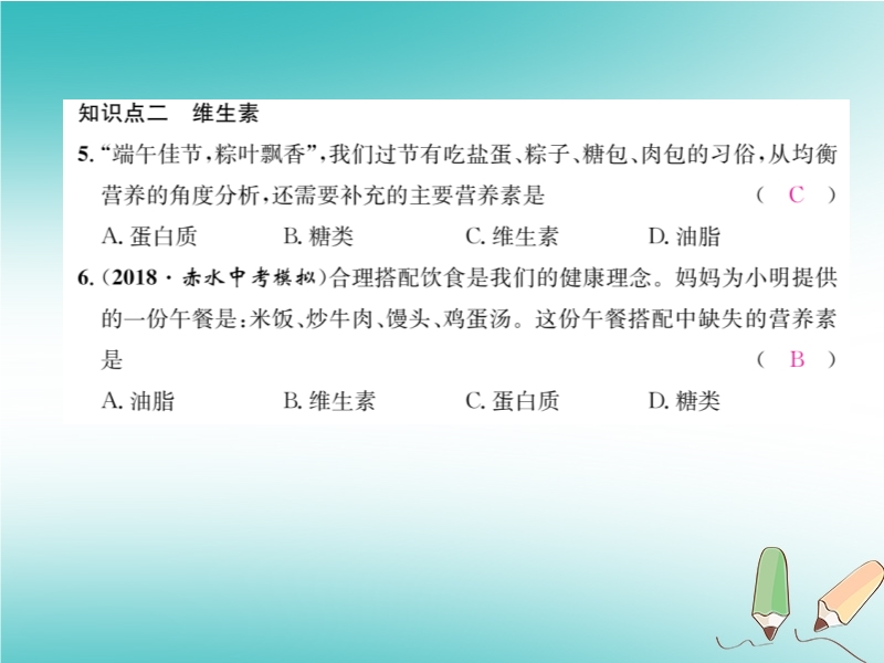 2019春沪教版九年级化学下册《第8章第3节 蛋白质维生素》习题课件