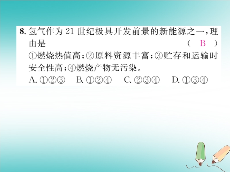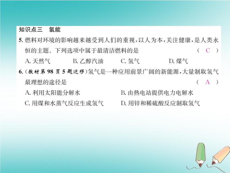 2019春沪教版九年级化学下册《第9章第1节 能源的综合利用(第2课时)》习题课件