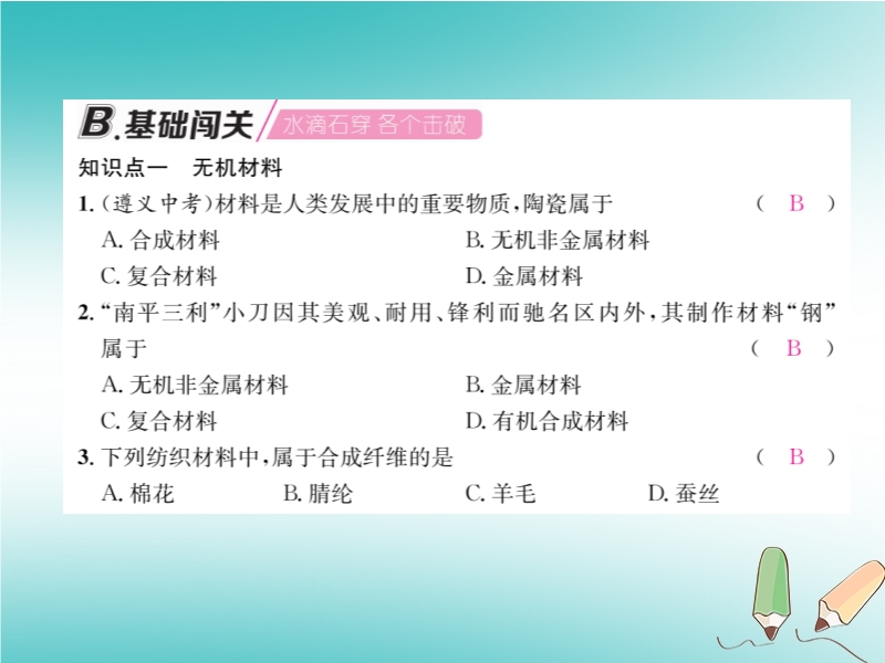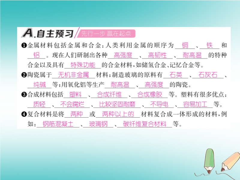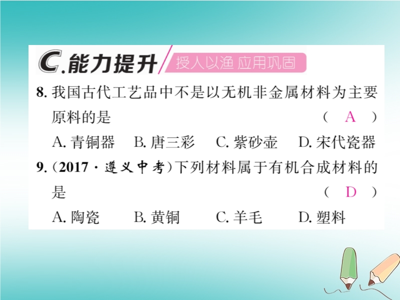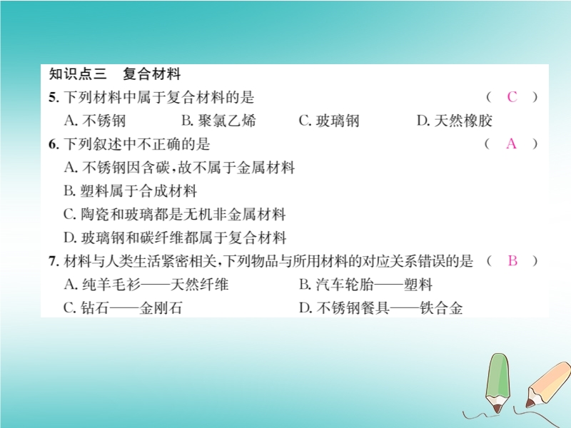 2019春沪教版九年级化学下册《第9章第2节 新型材料的研制》习题课件