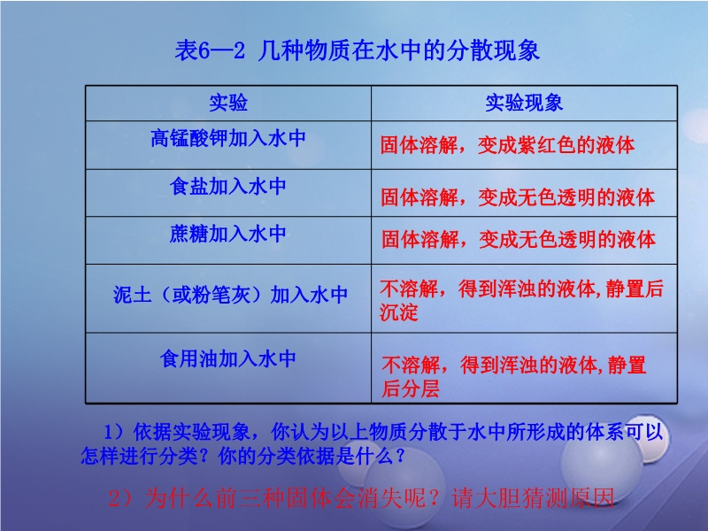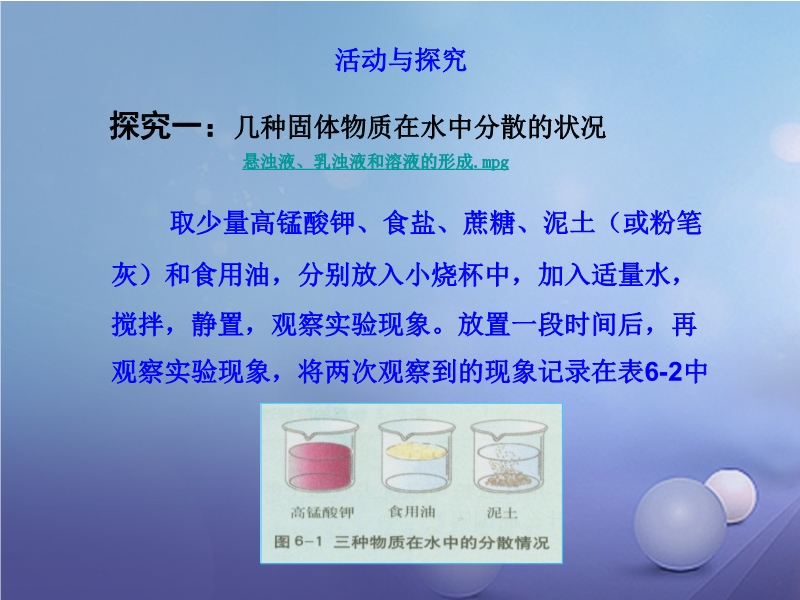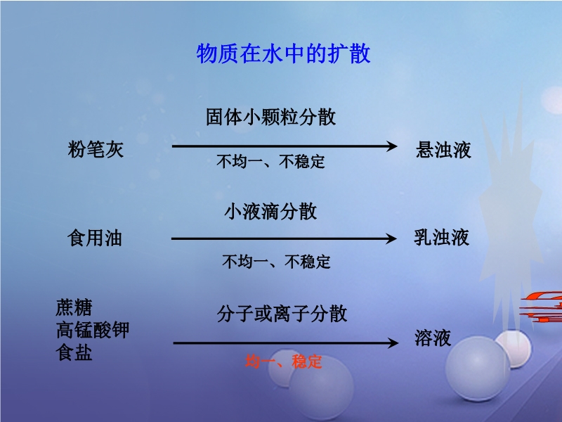 沪教版九年级化学下册《6.1 物质在水中的分散》教学课件