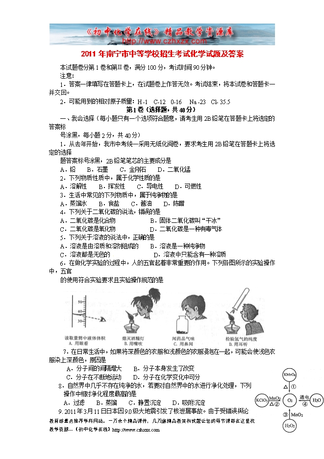 - 上一份试卷:2011年绵阳市初中毕业考试化学试题及答案