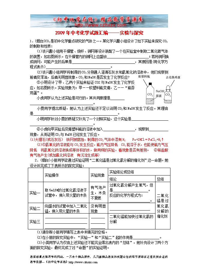 2009年中考化学试题汇编-----实验与探究