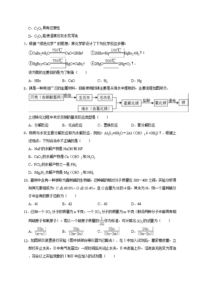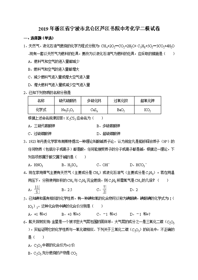 【内容简介】2019年浙江省宁波市北仑区芦江书院中考化学二模试卷(解析版)