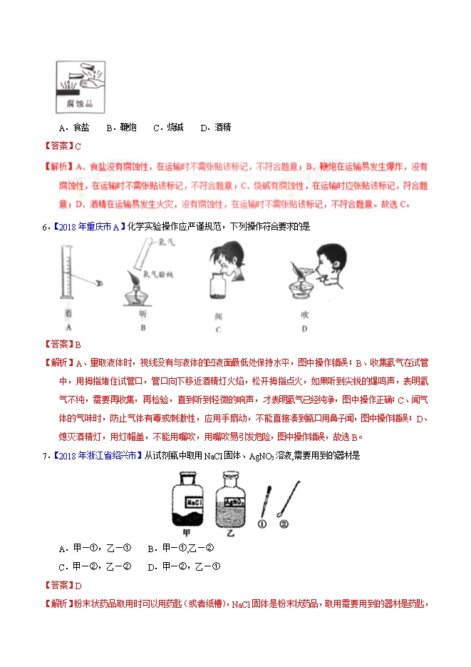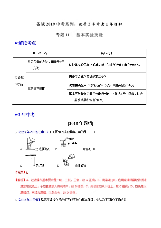 【内容简介】2019年备战中考化学精品系列2年中考1年模拟专题11 基本实验技能(解析版)