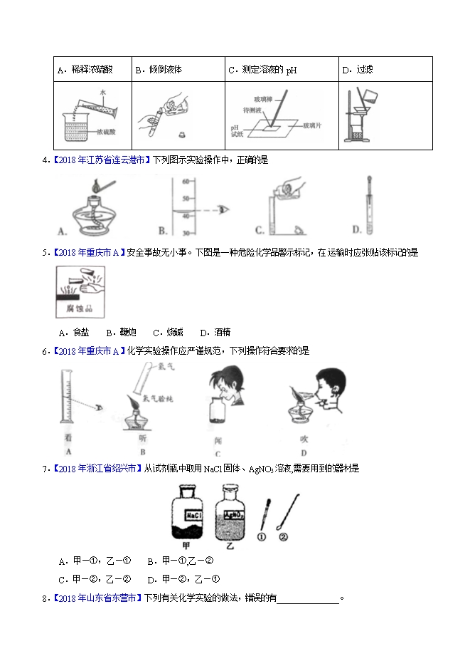 2019年备战中考化学精品系列2年中考1年模拟专题11 基本实验技能(原卷版)