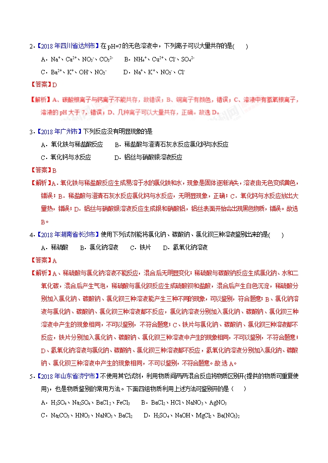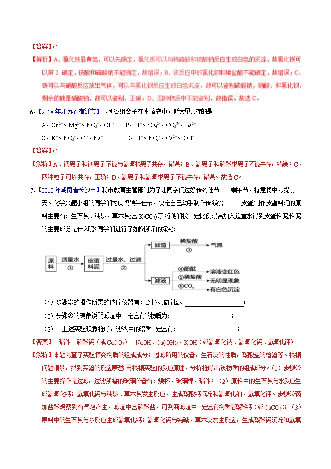 2019年备战中考化学精品系列2年中考1年模拟专题13 复分解反应及离子共存(解析版)