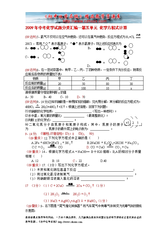 2009年中考化学试题分类汇编—第五单元 化学方程式计算
