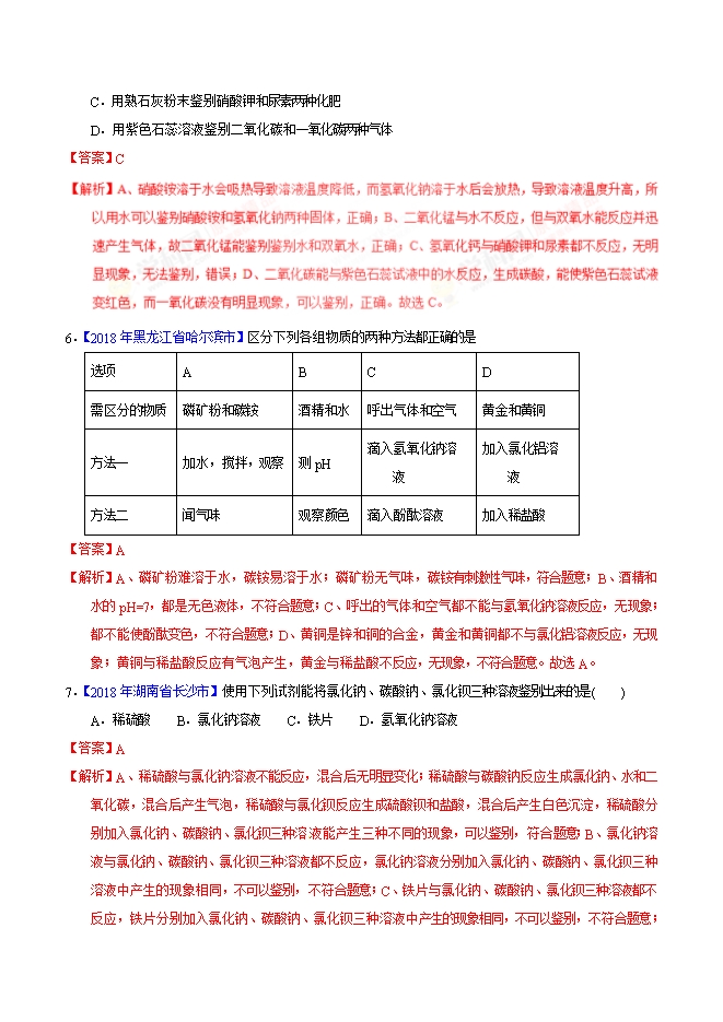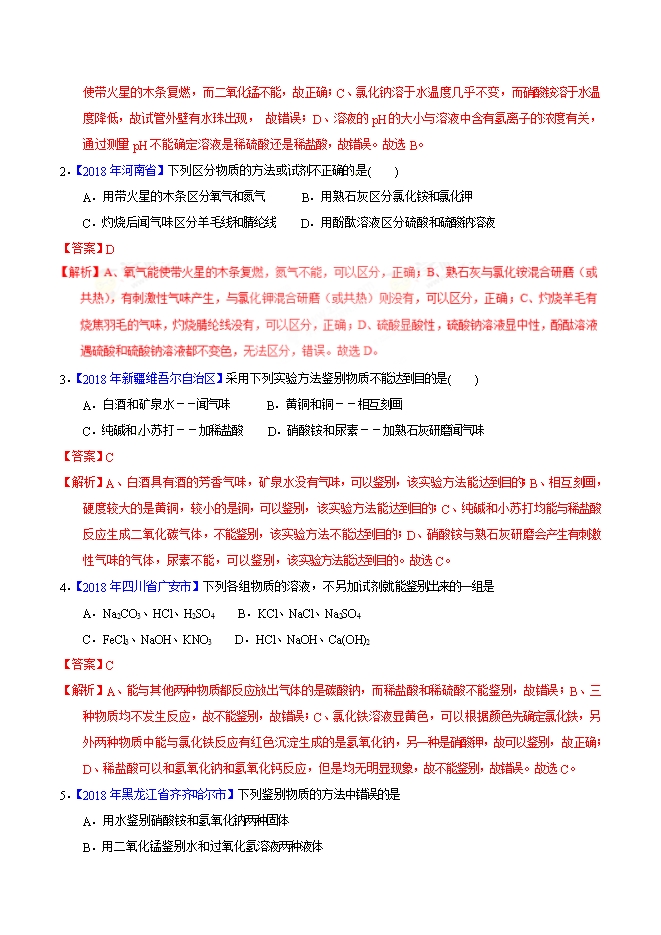 2019年备战中考化学精品系列2年中考1年模拟专题14 物质的检验和鉴别(解析版)
