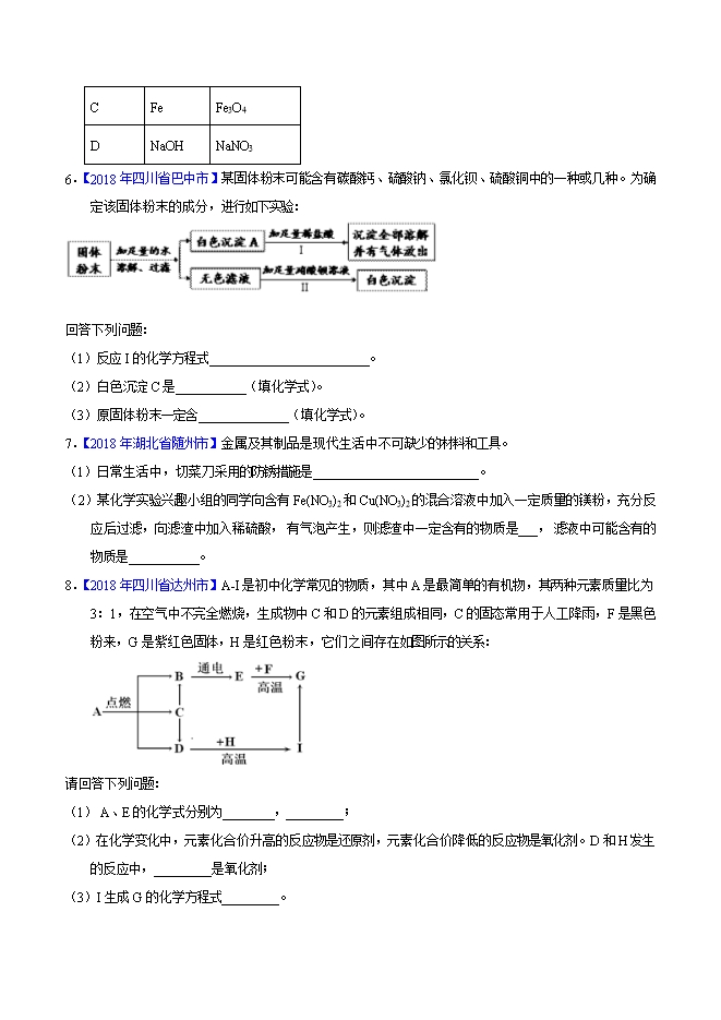 【内容简介】2019年备战中考化学精品系列2年中考1年模拟专题16 物质的推断(原卷版)