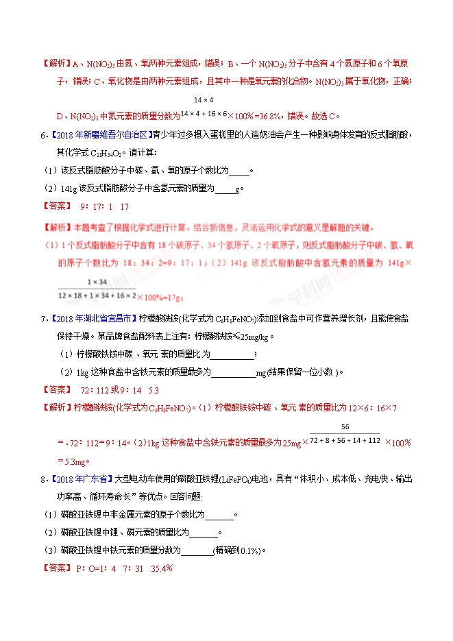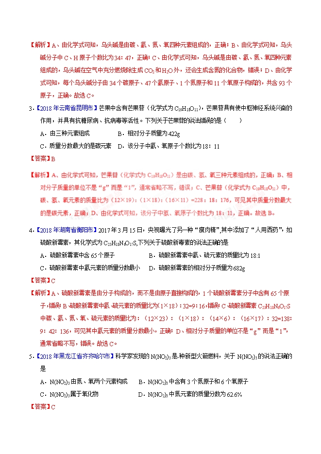 2019年备战中考化学精品系列2年中考1年模拟专题17 有关化学式的计算(解析版)