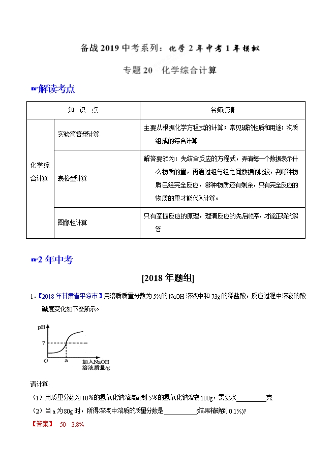 【内容简介】2019年备战中考化学精品系列2年中考1年模拟专题20 化学综合计算(解析版)