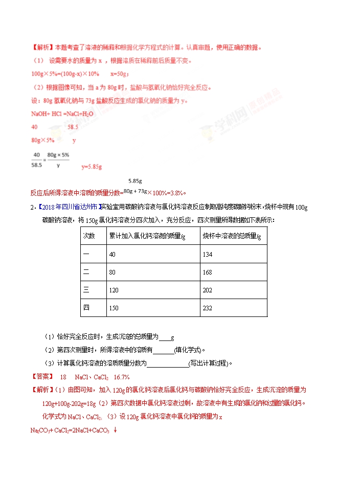 2019年备战中考化学精品系列2年中考1年模拟专题20 化学综合计算(解析版)