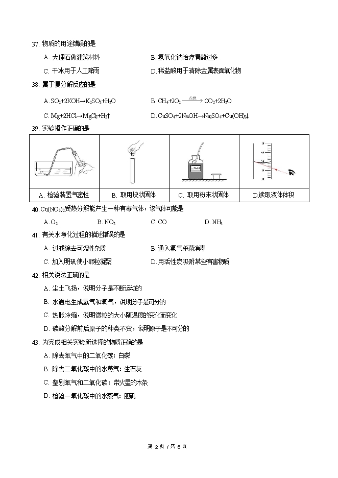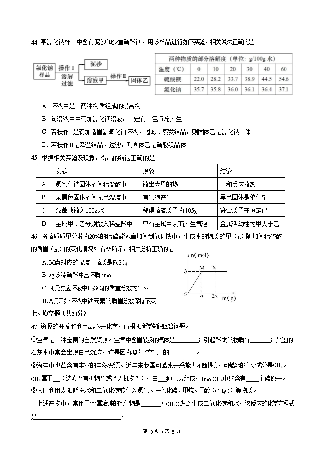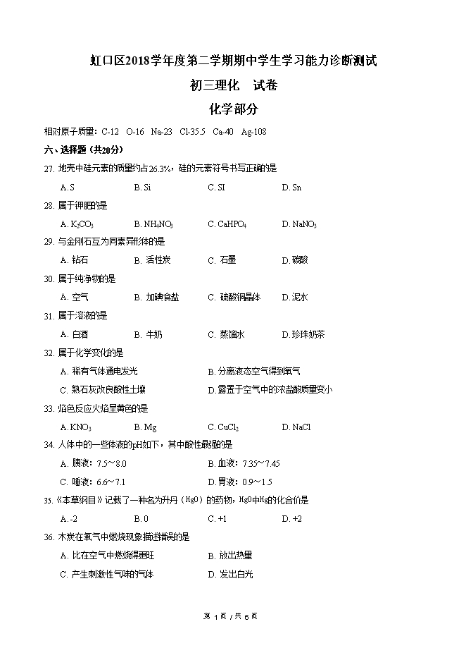 【内容简介】2019年上海市虹口区中考二模化学试卷(word版含答案)