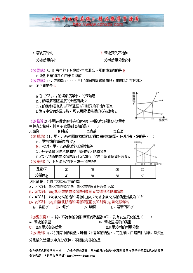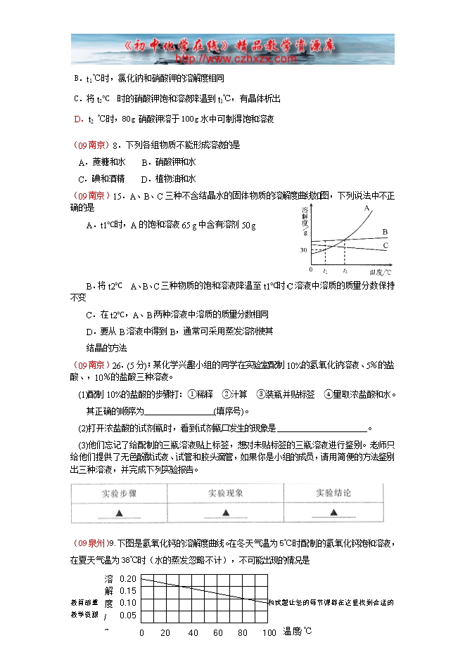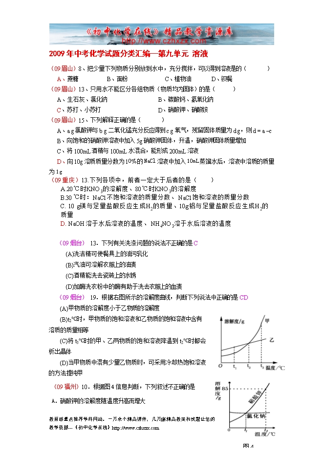 - 下一份试卷:2009年中考化学试题分类汇编—第十单元 酸和碱