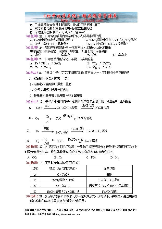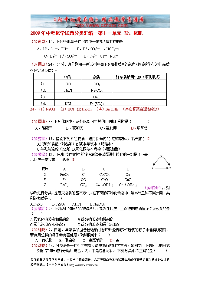 2009年中考化学试题分类汇编—第十一单元 盐、化肥