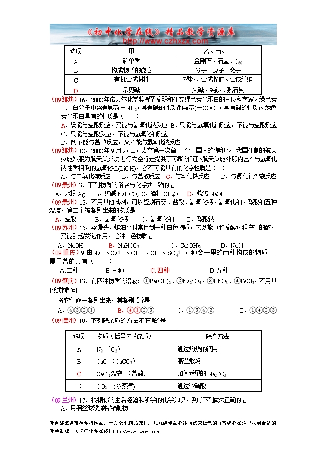 - 下一份试卷:2009年中考化学试题分类汇编—第十二单元 化学与生活