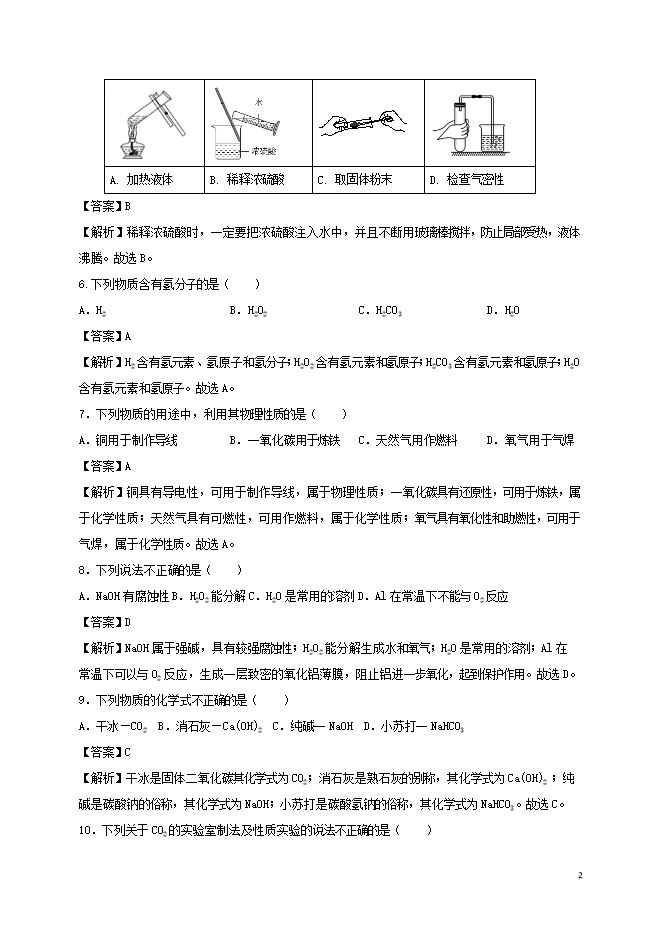 2019年北京市中考化学真题试题(word版含答案解析)