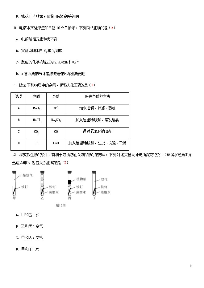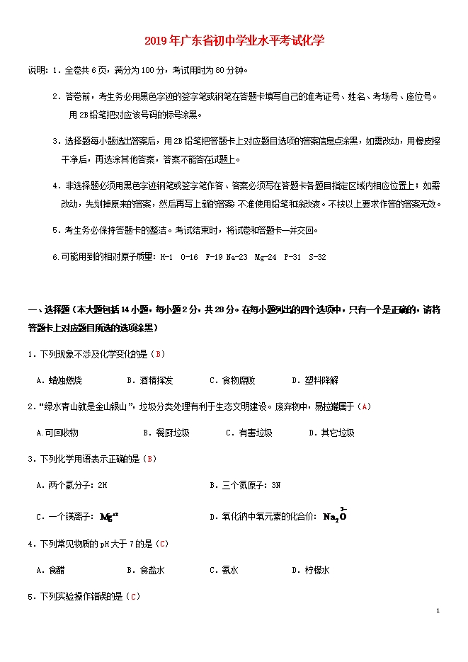 2019年广东省中考化学真题试题(word版含答案)