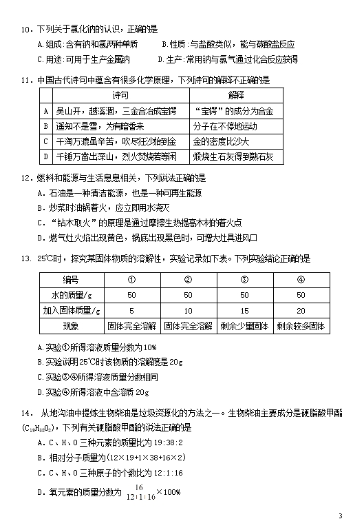 2019年广东省广州市中考化学真题试题(word版含答案)
