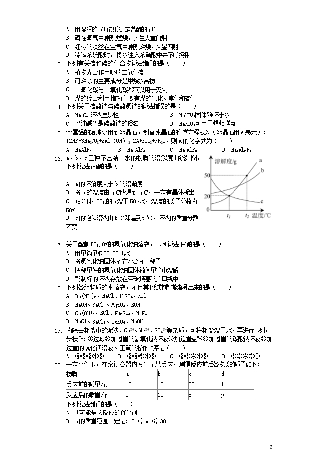 2019年广西梧州市中考化学真题试题(word版含答案解析)