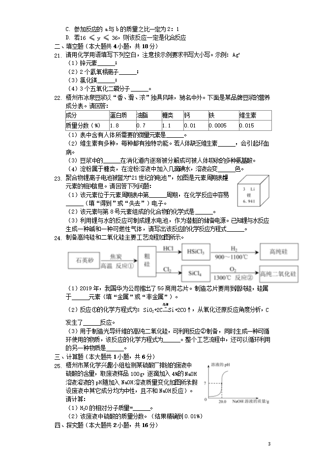 【内容简介】2019年广西梧州市中考化学真题试题(word版含答案解析)