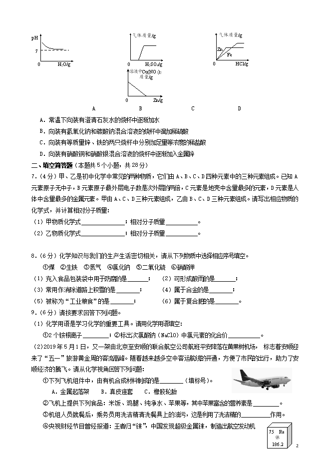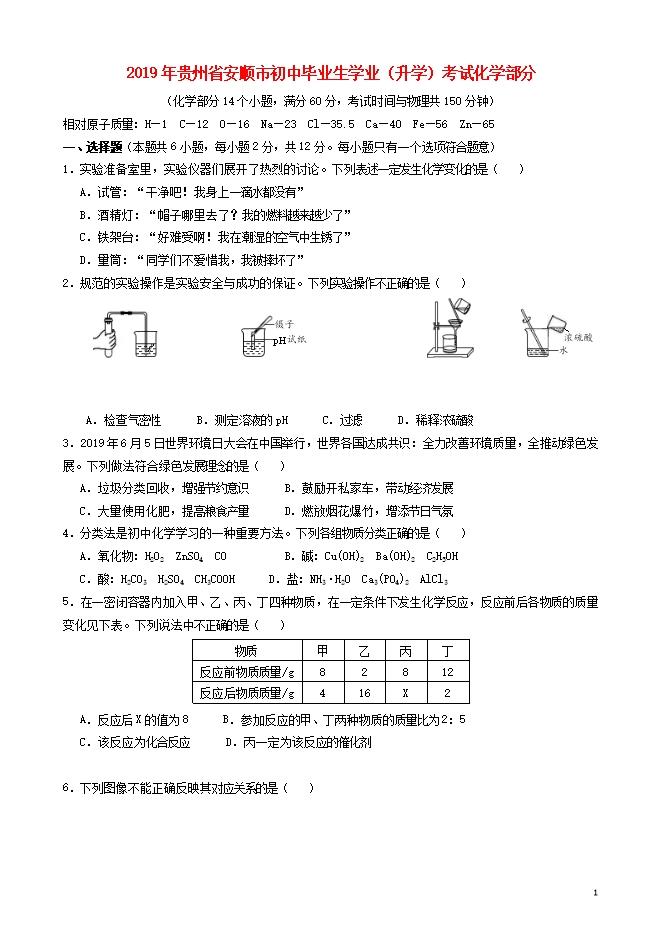 2019年贵州省安顺市中考化学真题试题(word版含答案解析)