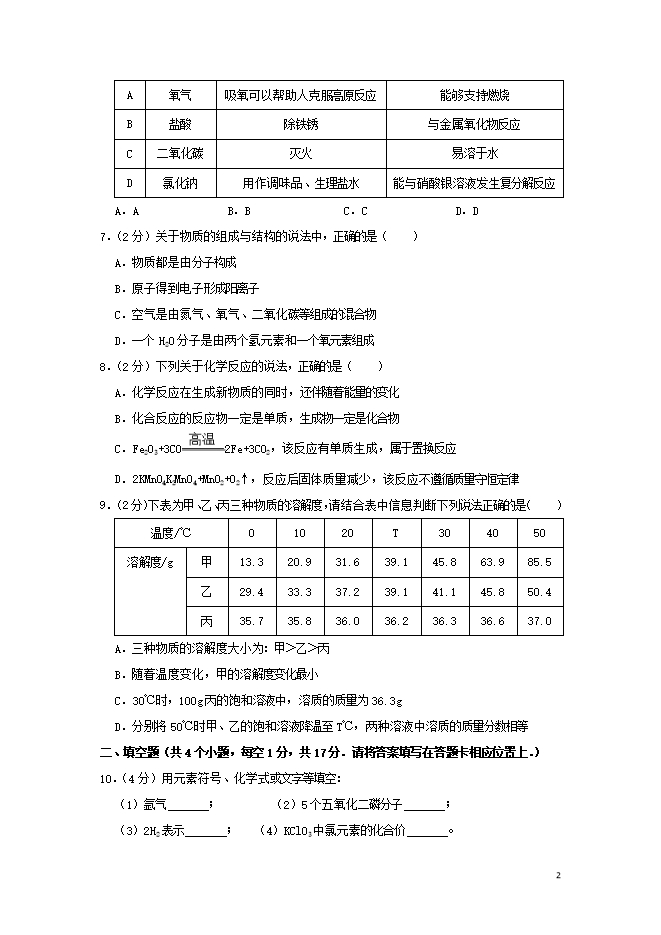 2019年贵州省铜仁市中考化学真题试题(word版含答案解析)