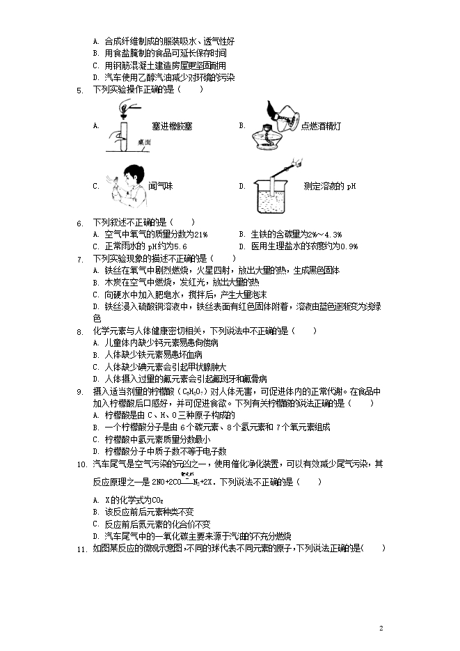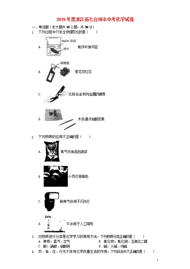 2019年黑龙江省七台河市中考化学真题试题(word版含答案解析)